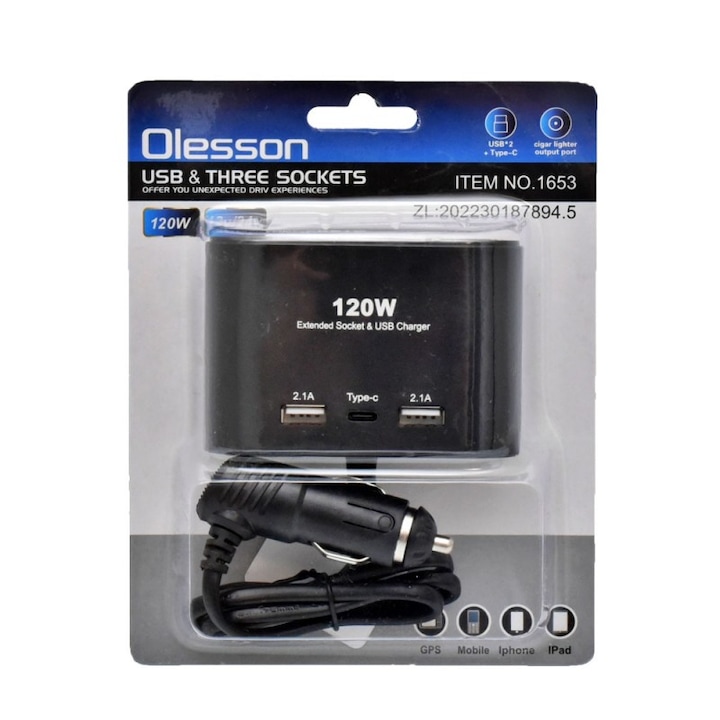 قسام مدخل الولاعة 3 مخارج منفذين USB منفذ typ-c