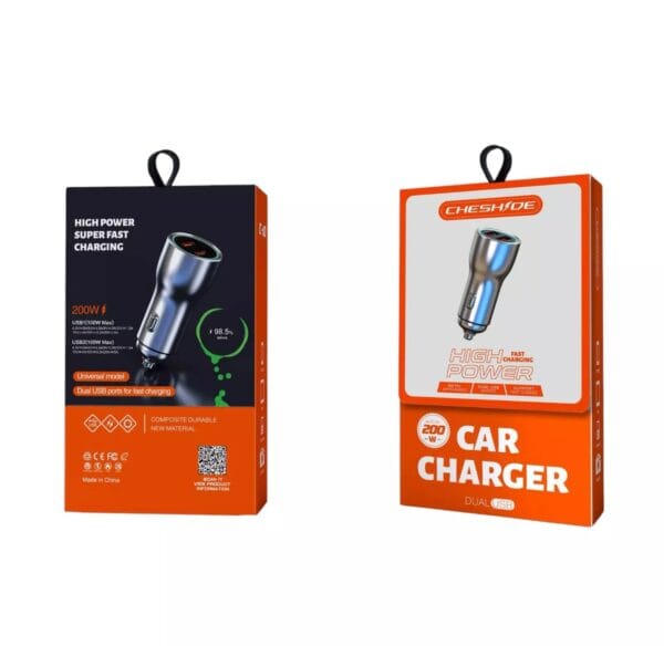 شاحن سيارة سريع USB – TYPE C-C بقوة 200W