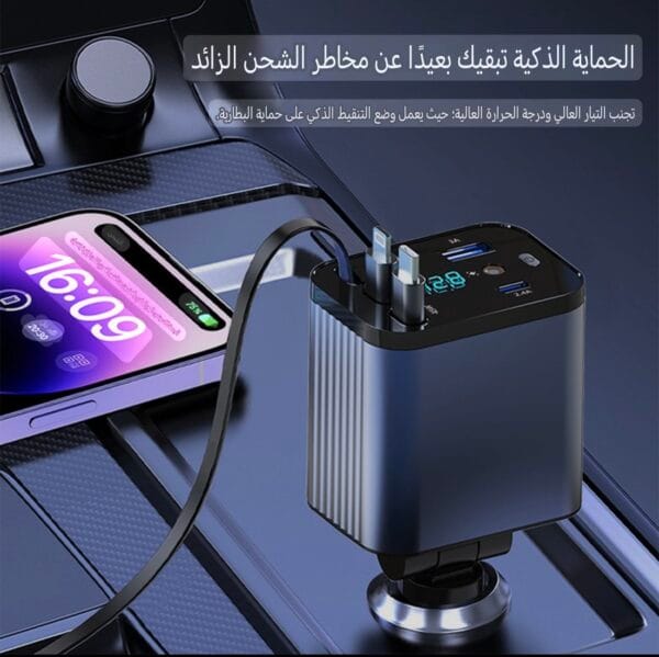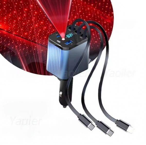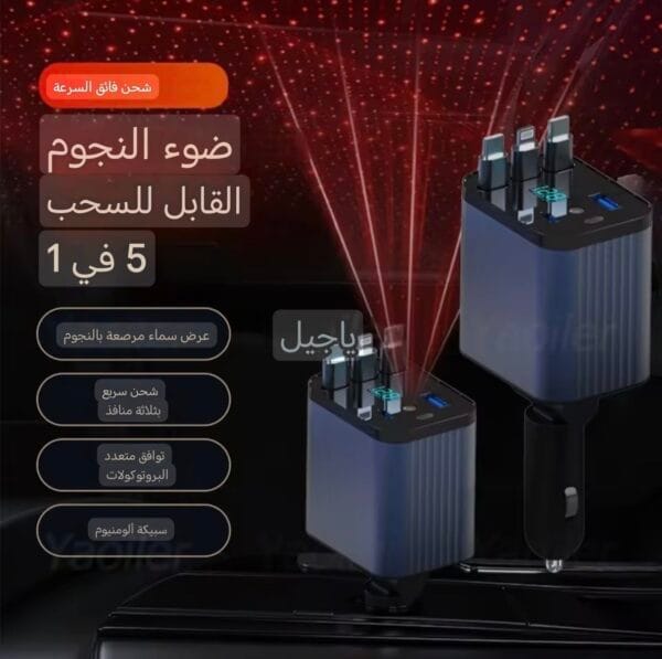 احصل على تجربة شحن متكاملة داخل سيارتك مع شاحن السيارة متعدد المخارج المزود بإضاءة ليزر فاخرة وشاشة رقمية لعرض الجهد. يأتي بتصميم معدني أنيق، ويحتوي على 5 منافذ شحن توفر طاقة سريعة وثابتة لجميع أجهزتك في نفس الوقت.