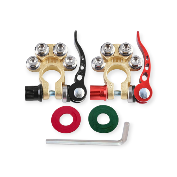 أهم ميزة هي المقبض الجانبي الذي يسمح لك بفك أو شد القطب بيدك دون الحاجة إلى مفاتيح ربط في كل مرة، وهو مثالي لمن يقومون بفصل البطارية باستمرار (مثل عند السفر أو تخزين السيارة).
