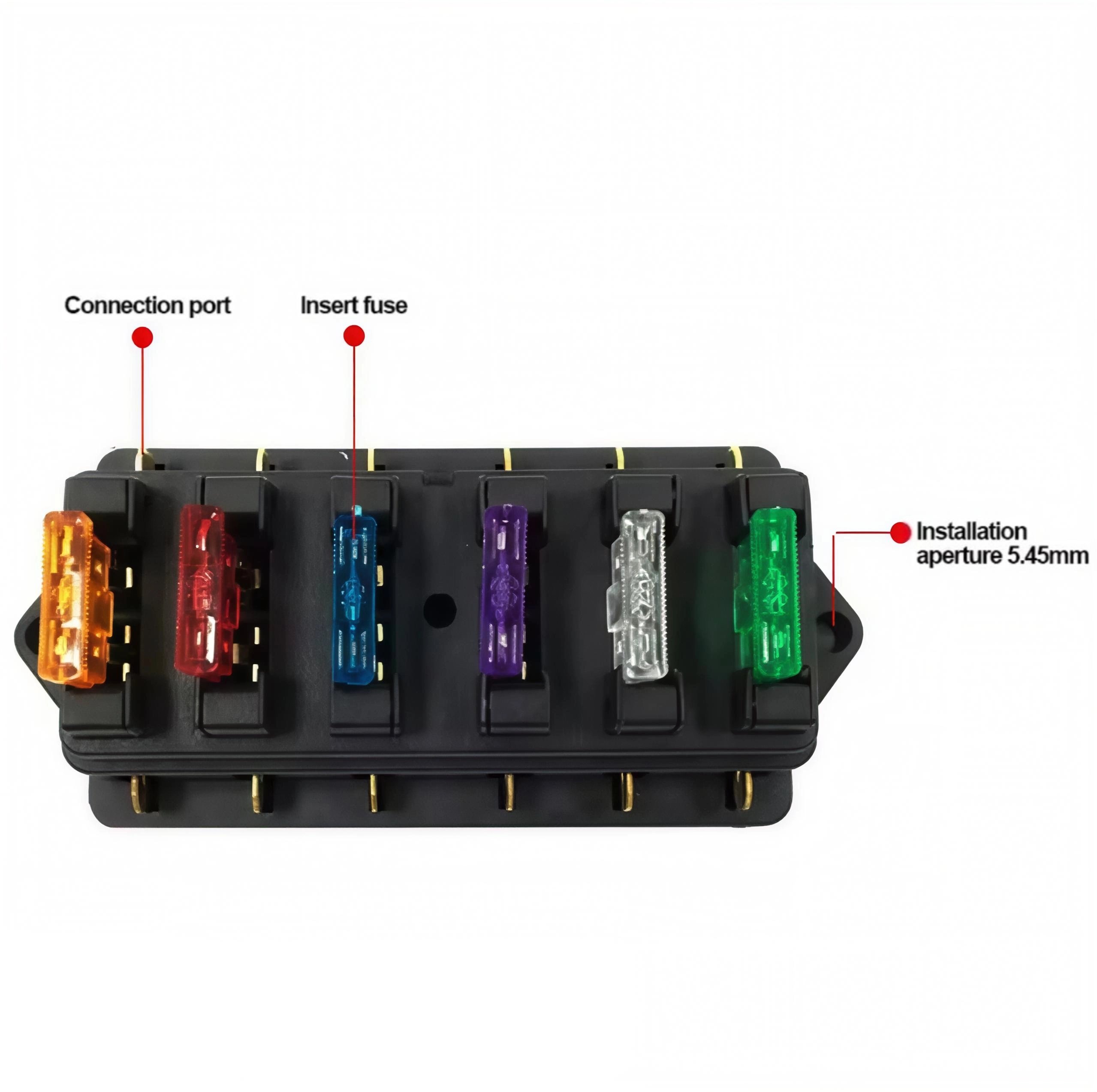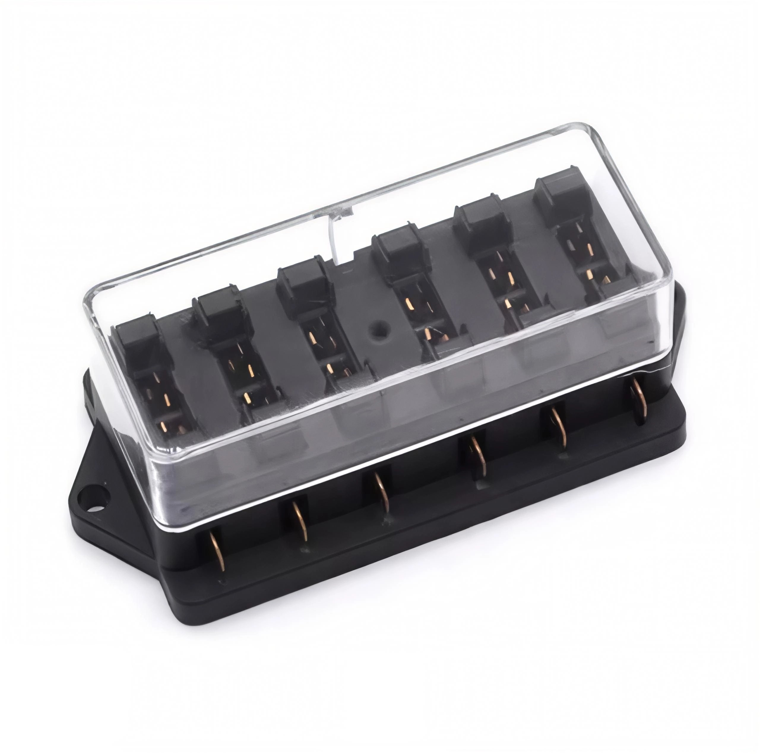 علبة فيوزات كهربائية للسيارة – 6 مخارج مع غطاء حماية شفاف مقاوم للماء