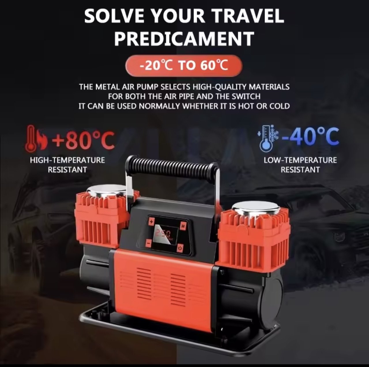 طول الأنبوب: حوالي 750 سم، أنبوب نفخ عالي الضغط من البولي أميد. دقة قياس ضغط الإطارات: ±0.1 كيلوغرام (القسمة الواحدة تساوي 0.2 كيلوغرام). وزن التغليف: الوزن الصافي حوالي 9 كيلوغرامات (مع التغليف). نطاق الاستخدام: سيارات السيدان/سيارات الدفع الرباعي (من المركبات المذكورة أعلاه)/سيارات متعددة الأغراض (مركبات الأعمال)/الحافلات/الشاحنات